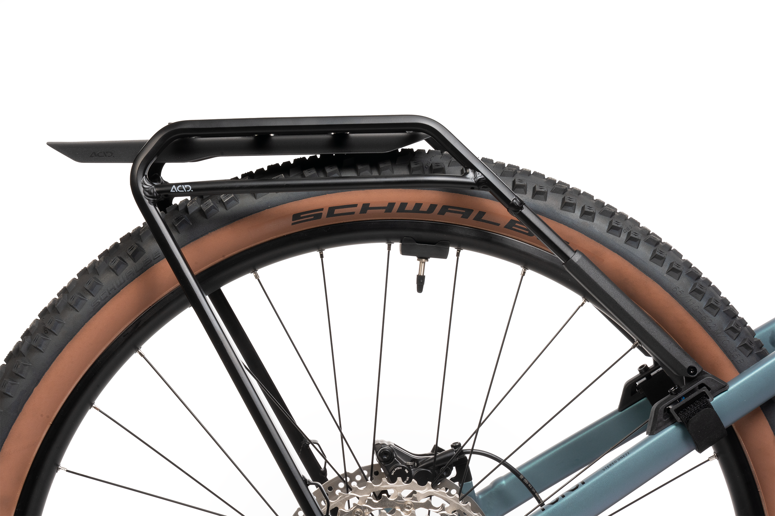 The ACID Mudguard for the FULL SUSPENSION luggage carrier is made from 100% recycled plastic, combining sustainability with high functionality. Designed specifically to fit the ACID FULL SUSPENSION luggage carrier, it also offers mounting options for accessories such as the CUBE Bottle Cage. An integrated mount allows for secure attachment of the ACID HUSK Tool with its matching holder. The durable construction provides reliable protection against dirt and spray – both on the trail and during extended tours.