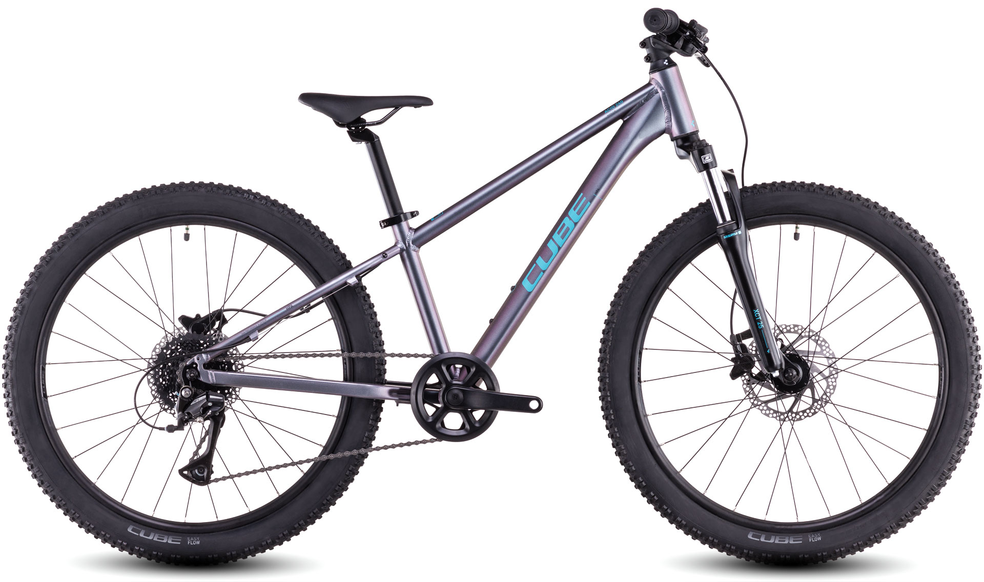 Der Rahmen des Acid 240 Disc besteht aus denselben hitzebehandelten 6061er-Aluminiumrohrsätzen wie der unserer Erwachsenen-Mountainbikes und ist demnach genauso robust und stabil. Allerdings haben wir seine Proportionen und das Gewicht auf die Anforderungen von Kindern abgestimmt. Die montierten Scheibenbremsen sind leicht bedienbar und unterstützen kraftvolle, sichere Bremsmanöver bei jedem Wetter. Zudem können Schutzbleche verschraubt werden – und ein Flaschenhalter, damit die Youngsters unterwegs immer top versorgt sind. Sein Handling verspricht hohen Fahrspaß und zugleich Zuverlässigkeit – so kann der Nachwuchs jede Menge Selbstvertrauen tanken. Weil sich der eine oder andere Sturz kaum vermeiden lässt, haben wir zudem ein einfach austauschbares Schaltauge verbaut. Dadurch gehören aufwendige Reparaturen nach einem Aufprall der Vergangenheit an.