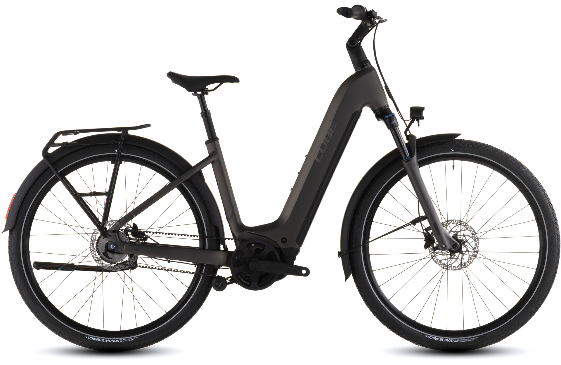 The Easy Entry version of our Touring Hybrid delivers what it promises: easy mounting and dismounting. But it sacrifices nothing to practicality and versatility. Our neat, sturdy Semi Integrated Carrier 2.0 makes it simple to carry what you need with you. There's a kickstand, full-length mudguards and lighting set, too. The powerful Bosch Performance PX motor and 800Wh PowerTube battery are so neatly integrated into the design, you'll barely notice they're there – apart from the extra help at the pedals, of course. And Efficient Comfort Geometry is designed around a 100mm-travel suspension fork for smooth and confidence-inspiring steering, even on rough roads.