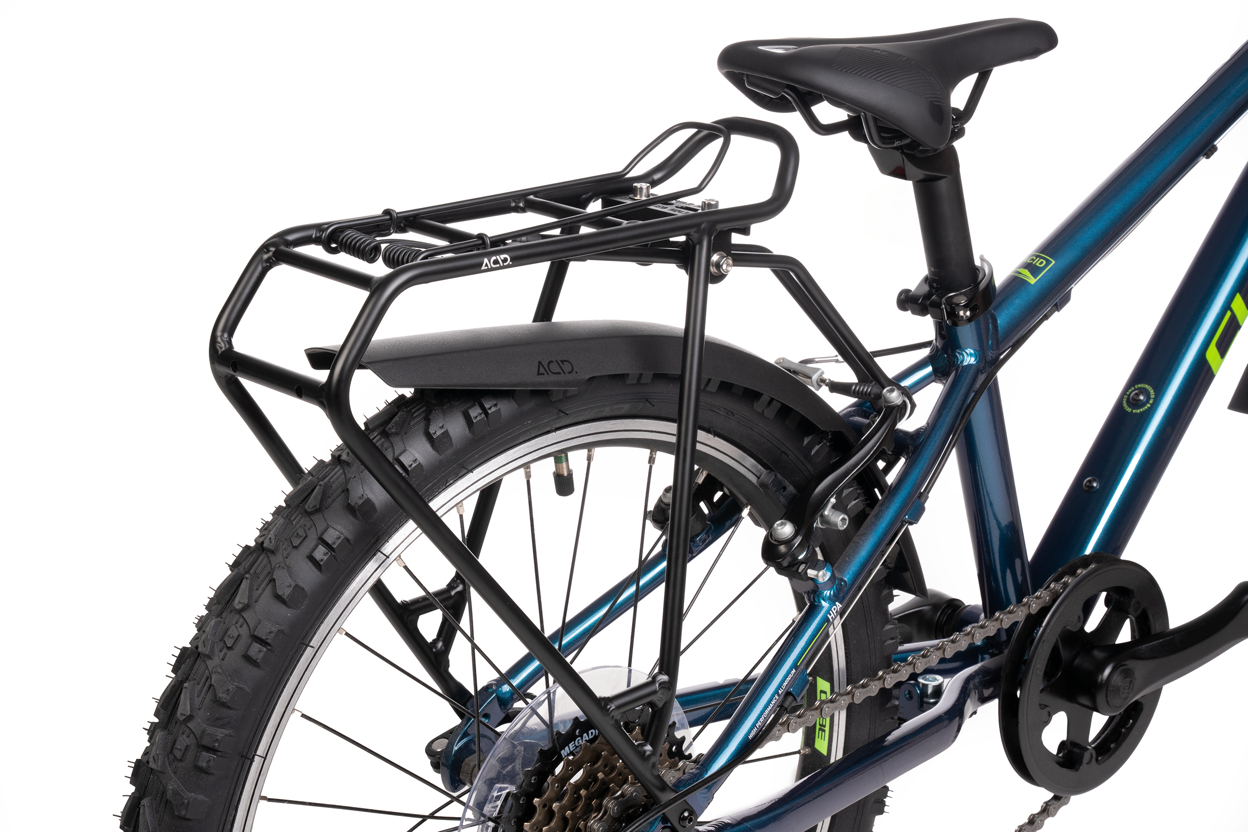 The ACID Carrier Universal Kids 20" fits most 20in children's bikes and adds a stable transport option to their set-up. Its sporty design and robust construction offer a high load-carrying capacity. The carrier is compatible with the ACID BALL tension strap as well as rear lights and reflectors from the ACID accessory range. Secure, long-lasting mounting ensures reliable use even on longer rides. High-quality materials ensure a long lifespan and reliable performance.