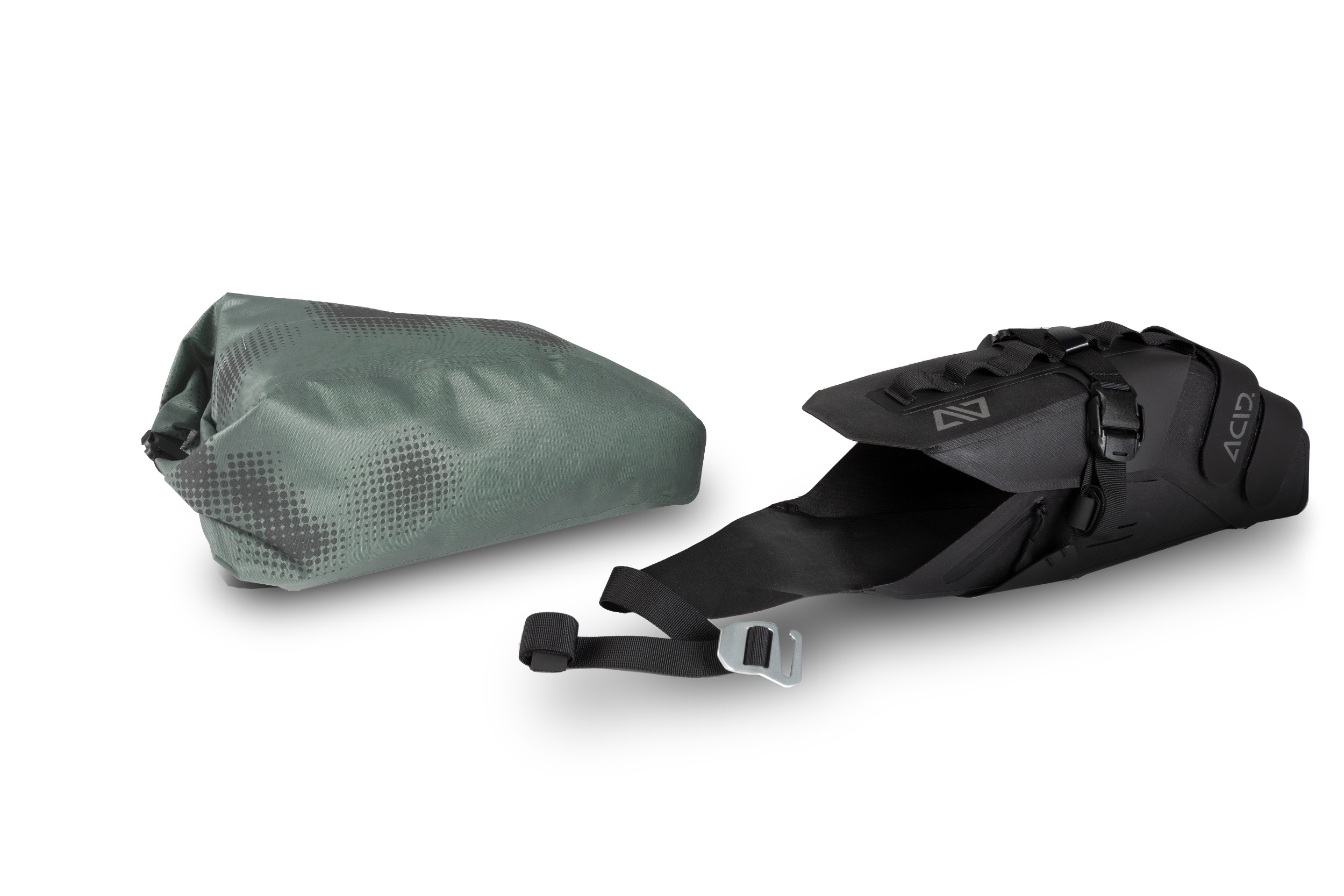 Vom Micro-Adventure bis zur längeren Bikepacking-Tour: Das ACID PACK PRO 11 wurde mit erfahrenen Bikepackern entwickelt. Das zweiteilige System aus Harness und wasserdichter, verschweißter Drybag ist funktionell konzipiert. Dank des flexiblen MOLLE-Systems lässt sich der Harness sicher an Rail und Sattelstütze anbringen und kann auch am Rad verbleiben. Die robuste Dry Bag wird in den Harness gesteckt, fixiert und ist abends oder zwischendurch schnell wieder entnommen. Ein weiteres Feature: Der Tascheninhalt lässt sich durch ein integriertes Entlüftungsventil noch weiter komprimieren. Reflektierende Elemente an beiden Teilen erhöhen die Sichtbarkeit im Straßenverkehr. Auch ein Rücklicht lässt sich problemlos integrieren.