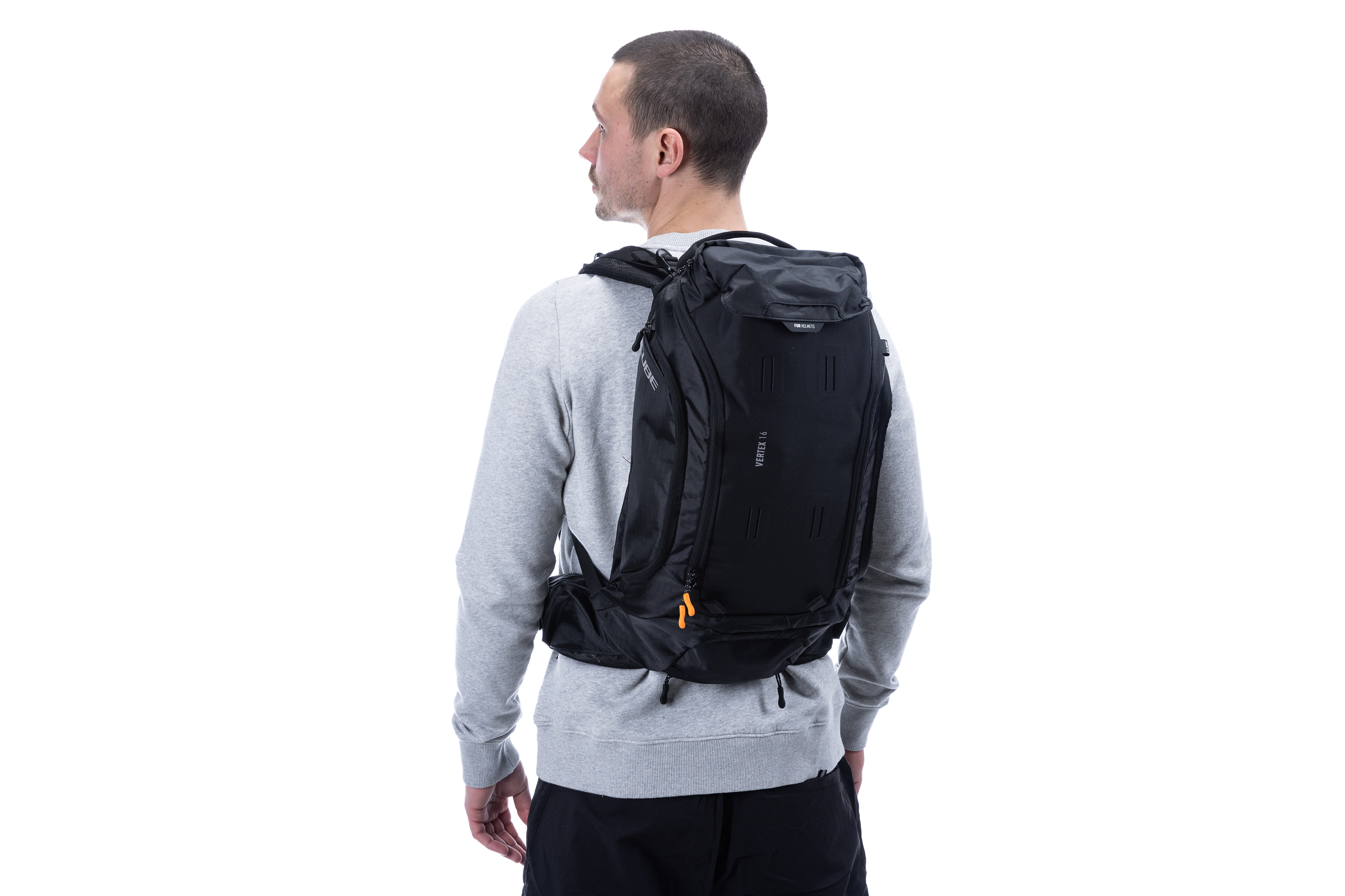 Ein Highlight für Enduro-Fans: Der VERTEX 16 ist unser High-Class-Rucksack, vollgepackt mit sinnvollen Features. Dank ergonomisch geformter Schultergurte, Hüftgurt und dem von CUBE entwickelten NF Ergonomics Rückensystem sitzt er bei allen Fahrmanövern optimal am Rücken. Dein Rücken ist gut polstert und belüftet. Der VERTEX 16 ist ausgestattet mit einem SAS-TEC LB-L Protektor, der gerade mal 150 g wiegt. Protektorenhalterung, Helmhalterung, Brillenfach, Raincover ... alles dabei. Innentaschen, Hüftgurttasche, ein Smartphone-Fach und zwei seitliche Werkzeugfächer bringen Ordnung in deinen Bike-Tag. Trinkblasen-Kompatibilität ist Ehrensache. Und: Das Innenfutter ist nicht schwarz, sondern farbig, damit du dich im Rucksack schneller und besser zurechtfindest.