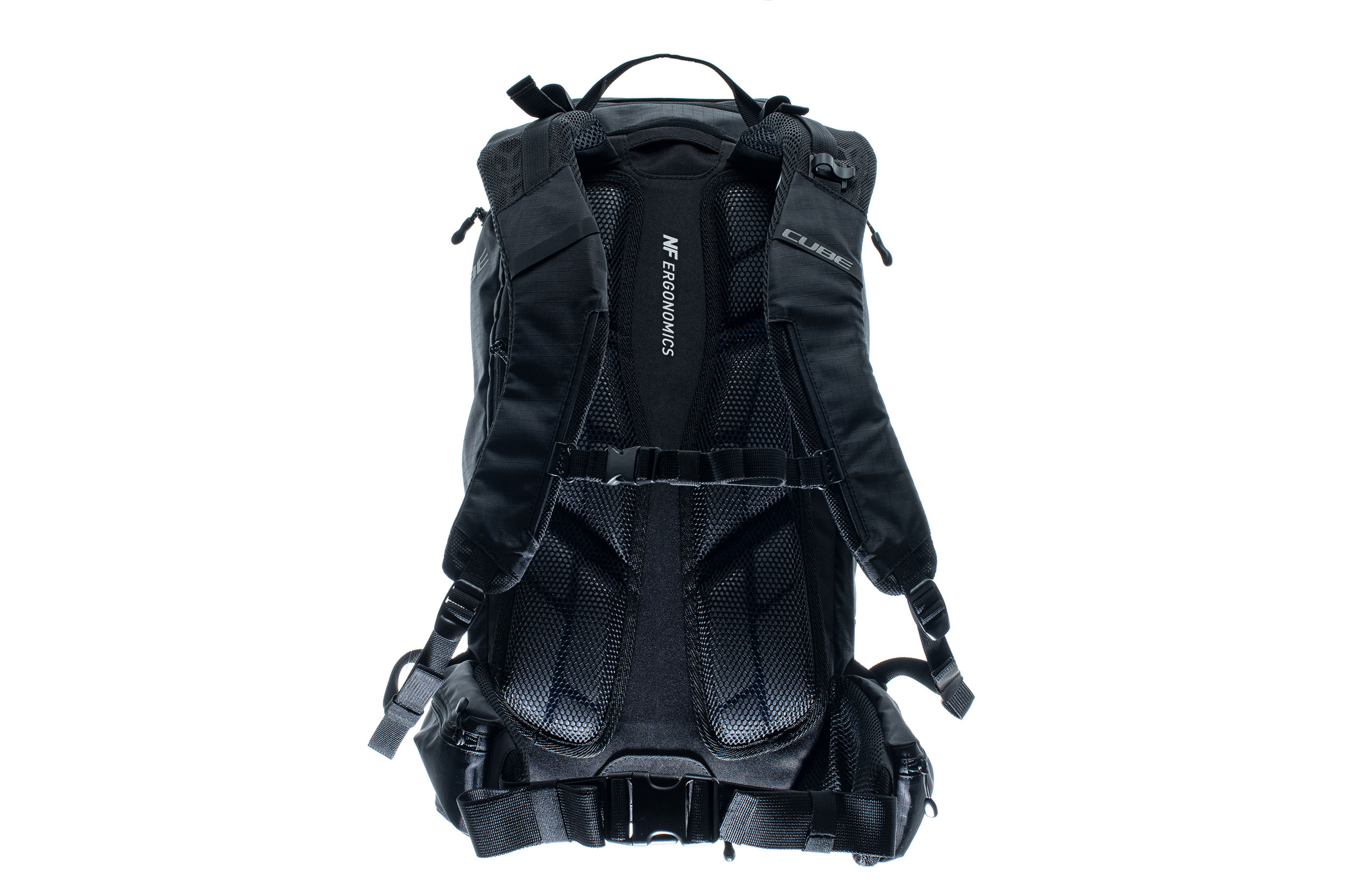 Enduro fans listen up! The VERTEX 16 is our high-class backpack that's absolutely rammed full of practical features. An optimal fit courtesy of ergonomic shoulder straps, hip straps and CUBE's own NF Ergonomics back system developed in-house adds up to a backpack that stays put no matter how hard you shred. We also added padding and ventilation so your back stays comfortable and fresh. The VERTEX 16 includes a SAS-TEC LB-L protector weighing in at a feather-light 150 g. We also included a protector strap, helmet carrier, goggle compartment and rain cover for maximum practicality. Internal compartments, a hip pocket, a smartphone pocket and two side tool compartments keep everything organised while you session the trails. And we also made it hydration system-compatible because that's how we roll! What's more: instead of a standard black lining, we used a contrasting colour to make it easier and faster to find what you need.