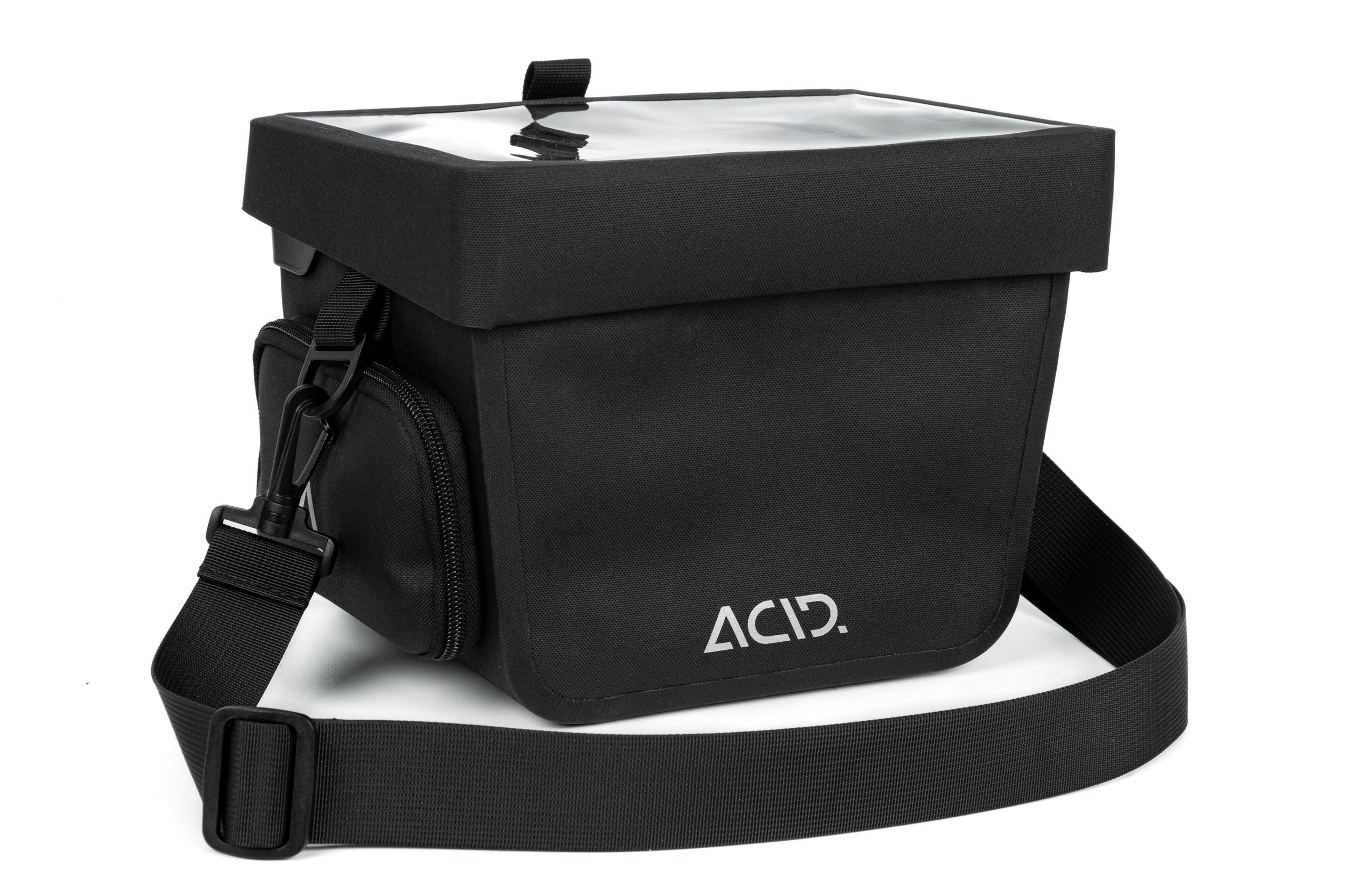 The functional, waterproof Handlebar Bag PRO 7 comes with the ACID FILink system for quick, secure attachment. A convenient shoulder strap takes it from rack to shoulder with ease. And the integrated window with touchscreen function means there's no need to take out your smartphone every time you need to check your messages or route. There's even a fold-out side pocket to stow your drinking bottle within easy reach at all times. Reflectors add visibility in all conditions.