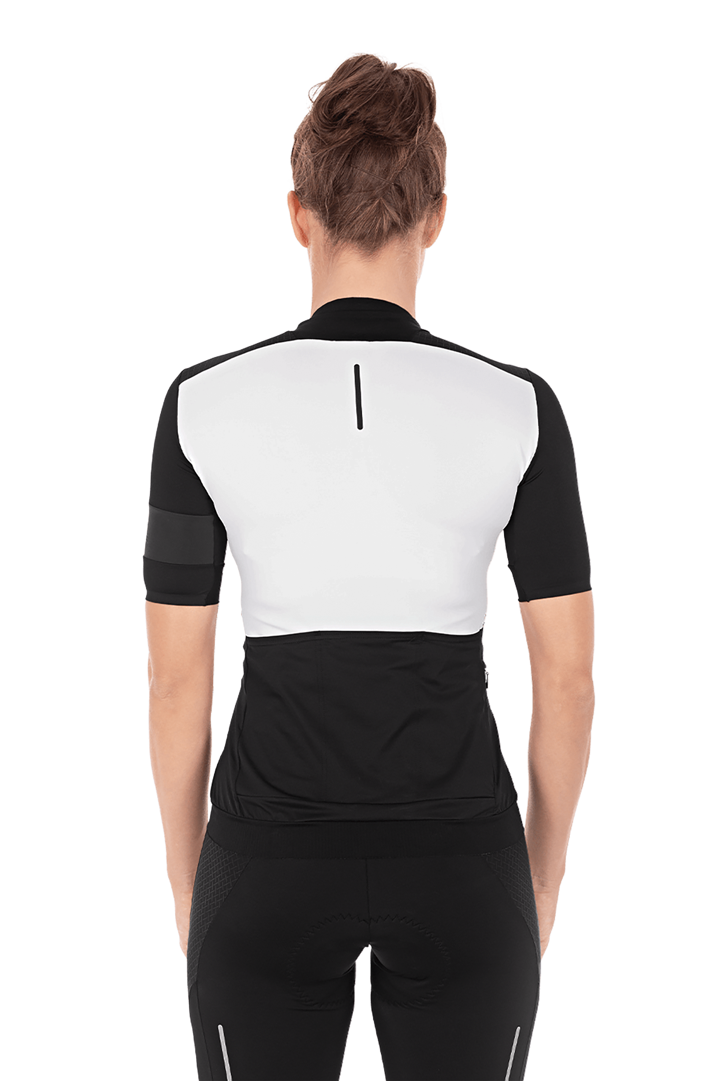 Our women-specific short-sleeve jersey in the team design is constructed from hard-wearing, quick-drying technical fabric that fits perfectly thanks to the athletic cut. As you'd expect of all our premium products, we paid careful attention to the details that ambitious bikers look for – and included stretchy silicone print on the seam, a small, waterproof zip rear pocket to keep your valuables stowed away safely, and reflective print for improved passive safety.