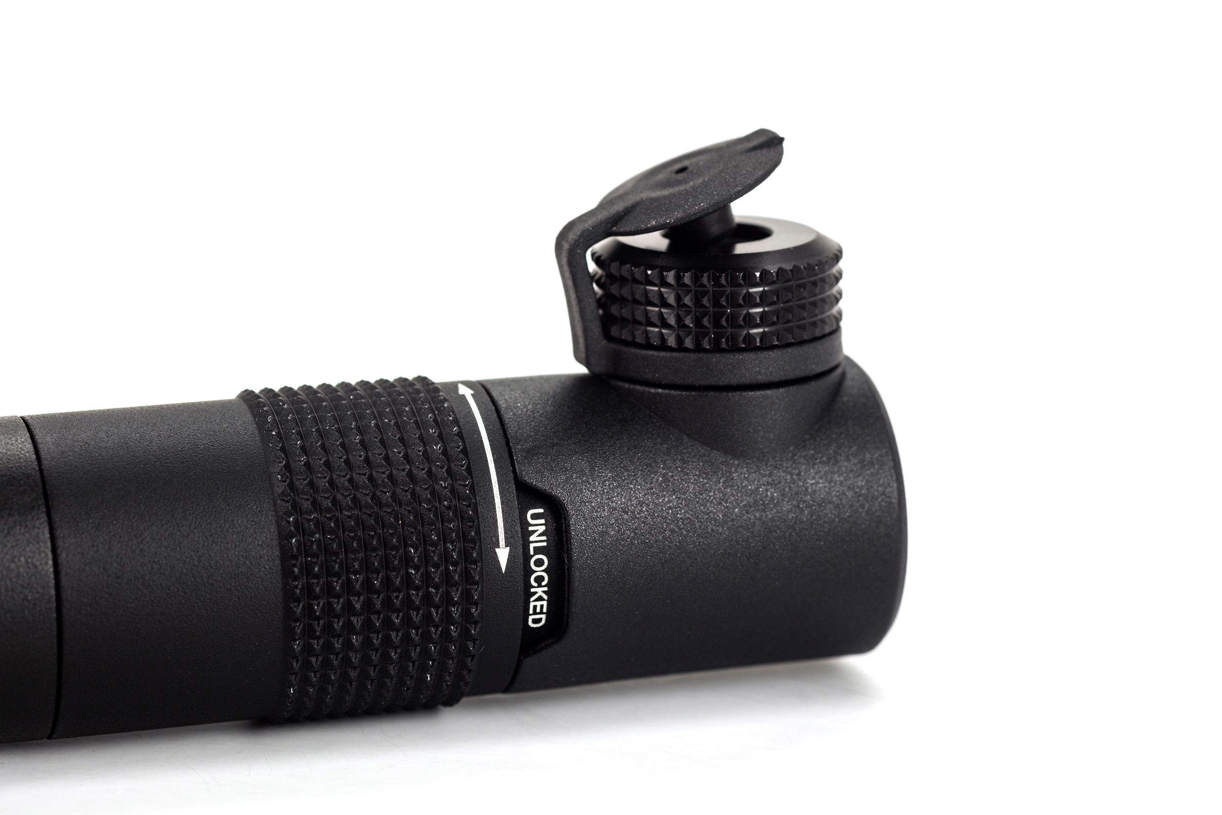 Small and mighty. Our CNC-lathed micro pump is tiny but packs a punch. Twist-lock attachment for Schrader and Presta valves and the power to handle up to 120psi. Size isn't everything.