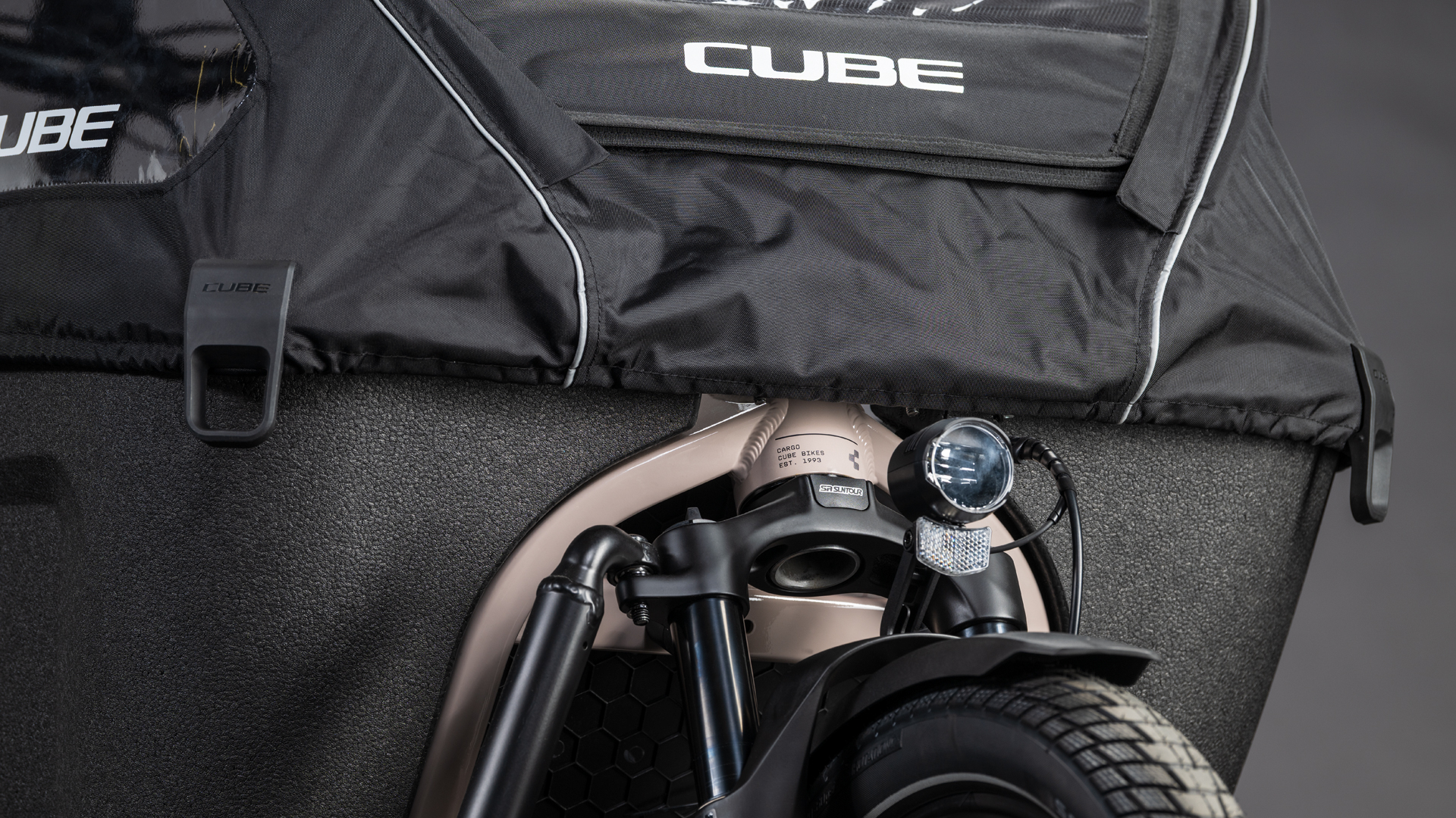 The Cargo Hybrid's integrated chain lock mount provides a convenient way to lock both the bike and the storage compartment when you have to leave it unattended, by means of the ACID Solid Pro K120 Cargo lock. Secure and with conical closure and a 120cm length, it provides peace of mind when you're running an errand or at any time when you're away from your home base.